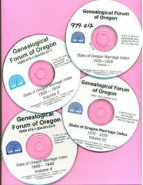 The Oregon Marriage CD volumes 1, 2, 3, and 4 have been revised. They are now in PDF format, available on CD, USB drive, or as an electronic file you can receive by email. Any or all of the four volumes may be acquired through the following: