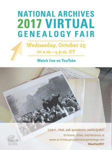 FREE NARA 2017 Virtual Genealogy Fair (save the date — 25 October 2017) #genfair2017