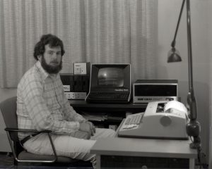 The items in the photo are a Southwest Technical Products 6800 computer with 36k of memory, dual mini floppies, a Hazeltine 1500 video terminal, and a Trendata1000 Selectric terminal. The small box on the disk drive is my homebrew 300 baud modem.