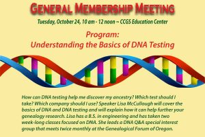 General Membership Meeting: UNDERSTANDING THE BASICS OF DNA TESTING