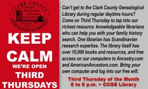 Clark County Genealogical Society July Meetings