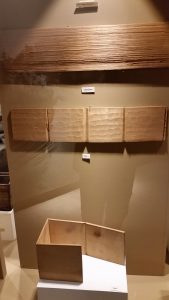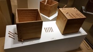 The Makah people would take very thin cedar planks (top of left pix) and cut “Vs” into them so they would bend into a box shape. They would then join the edges with wooden pegs driven through on an angle. Amazing! To think of all that work to make ONE box…..and in the museum there were the remains of several. In “those times” they must have had boxes of all sizes, each laboriously made this way. Just amazing.