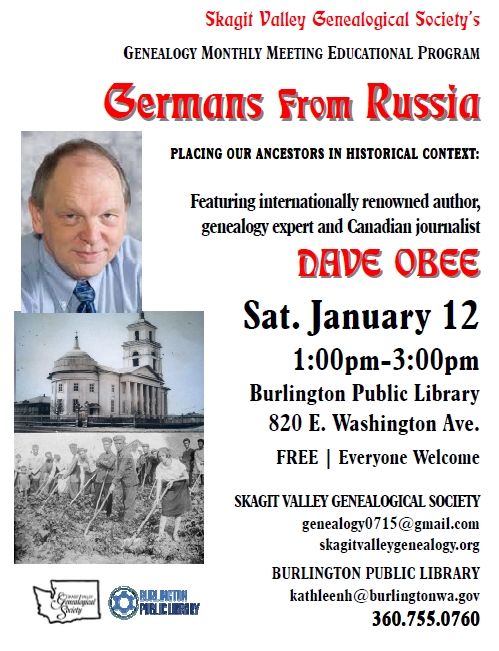 Dave’s topic is “Germans from Russia” and he will discuss the