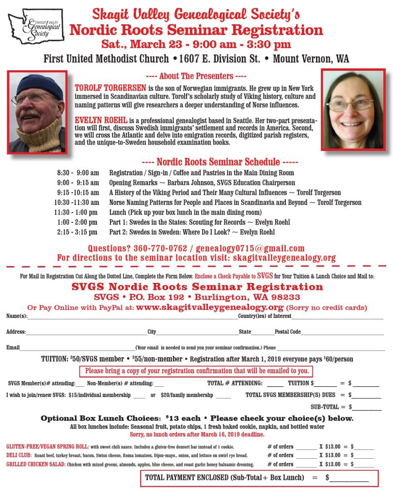 Skagit Valley Genealogical Society March Seminar Mar6 by Charles Hansen We have extended the sign up to March 16th for the reduced tuition