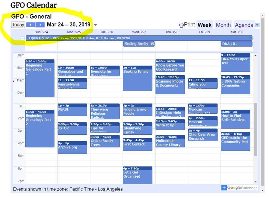 | Download the class notes for the presentations you plan to attend. Print them or not depending on your preference. Review them before attending. Bring them with you when you come for the class. Step 1. Visit GFO’s online calendar. View by week for better detail. |