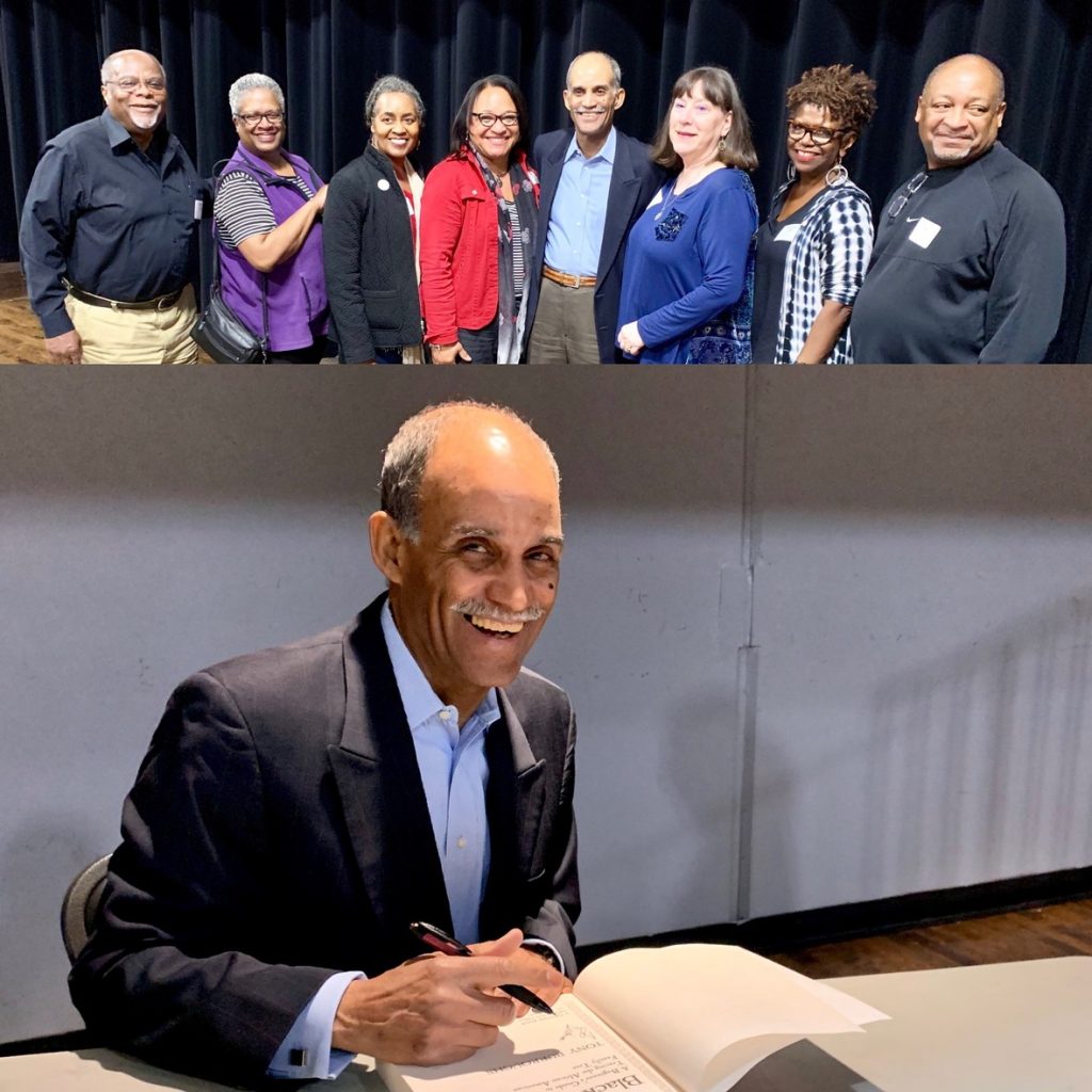 Top: Seattle attendees meet Tony. Bottom: Tony Burroughs signs copies of his book.