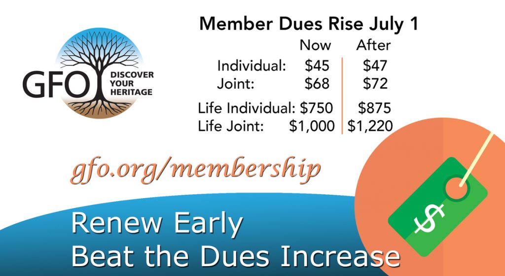 You have until Sunday night to join or renew your GFO membership before the price of dues goes up. Our fiscal year begins July 1, along with a new budget which takes into account our increasing costs, especially our rent.