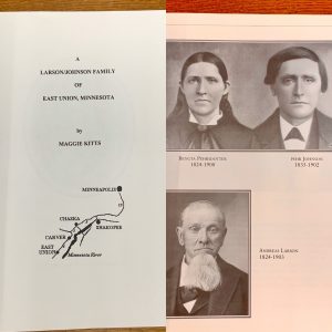 | Maggie Kitts poured her heart and soul into A Larson/Johnson Family of East Union, Minnesota, published in 1994. This family history runs an impressive 562 pages, tracing families of this region back to the early 1800s. Added bonus: the book begins with Grandma Nilla’s Filled Oatmeal Cookies recipe! |