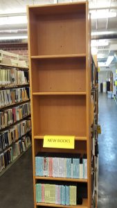 | Q: Why is the new book shelf empty? Isn’t the GFO getting any new books? A: Actually, we have a number of new books that have been donated, and some that we’ve purchased. But, for now, the library team is working to get ready for GivingTuesday–and that means getting the books that are already in the collection on the shelves where they can be inventoried on December 3. Watch for more new books the second week of December. |