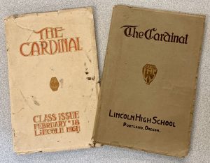 | This week’s surplus books take us on a little local time travel. We have two spare copies of Portland’s Lincoln High School yearbook, The Cardinal, from 1917 and 1918. You’ll love the photos of the students, the advertisements for local businesses, and the articles from a bygone era. |