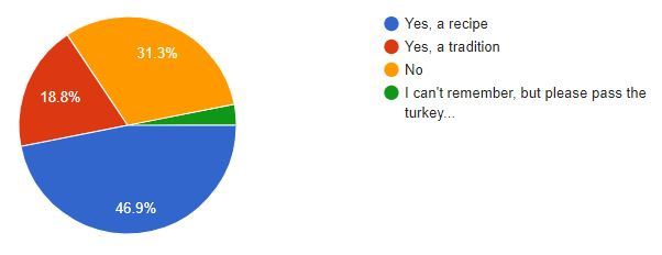 | As expected, many of us honor family traditions, either in what we do or what we eat. |