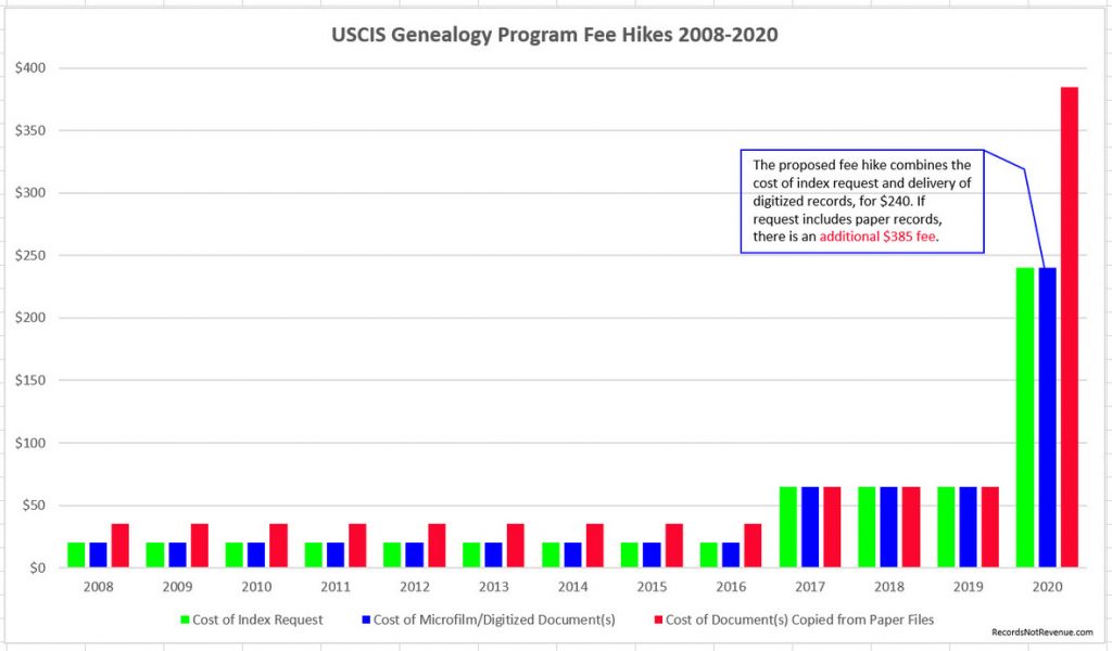 | A couple of weeks ago on our Facebook page we told you about plans by U.S. Citizenship & Immigration Services (USCIS) to increase fees for genealogy records by over 400%. |