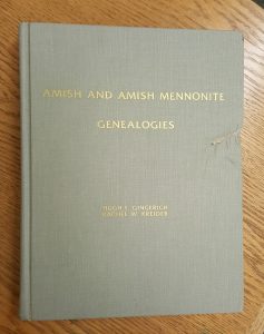 No pretty pictures or detailed maps in our book of the week—but what a treasure trove of genealogical information! Amish and Amish Mennonite Genealogies by Hugh F. Gingerich and Rachel W. Kreider, 1986, is chock full of names, dates, and locations gleaned from over 125 different sources. The foreword by Joseph F. Beiler states, “This volume offers actual accounts of all known Amish or Amish related immigrants, who came to America