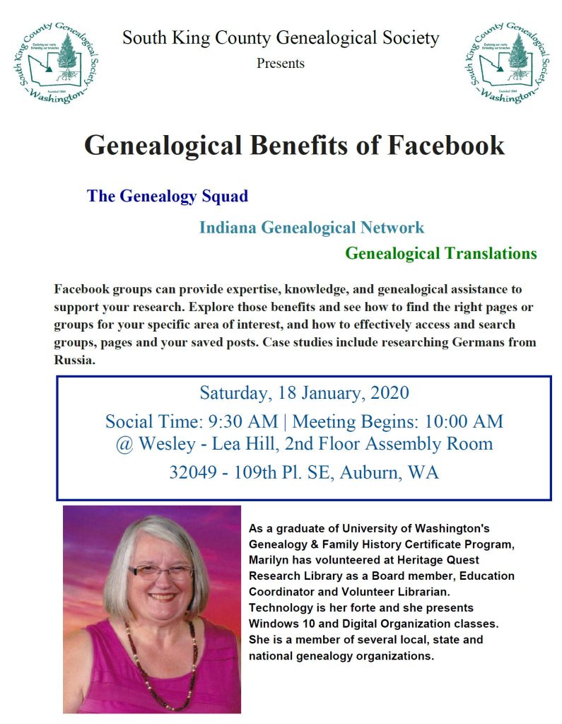 Hi Cynthia, perhaps your society can invite Marilyn to present soon? Visit our website for her contact info: http://skcgs.org/contact-us.html