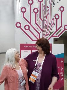 | Loretta Welsh and Laurel Smith, both GFO board members, discovered at Roots Tech they are fifth cousins. Chalk this up to the wonders of modern technology. GFO Library Chair Laurel Smith attended the giant RootsTech conference last week and agreed to allow the FamilySearch app Relatives Around Me to access her online tree to see if she had any shared matches who were also attending the conference. 10,000 people were there in Salt Lake City using the app. Relatives Around Me said Laurel was linked to more than 4,000 of them. When it revealed her very closest match among those, Laurel was dumbfounded. The app pointed her to Loretta Welsh, who has worked with Laurel at the GFO since 2011! Both serve on the GFO Board of Directors. Now after 9 years of knowing each other, they also know they are fifth cousins. Time to cue up the It’s a Small World music! |