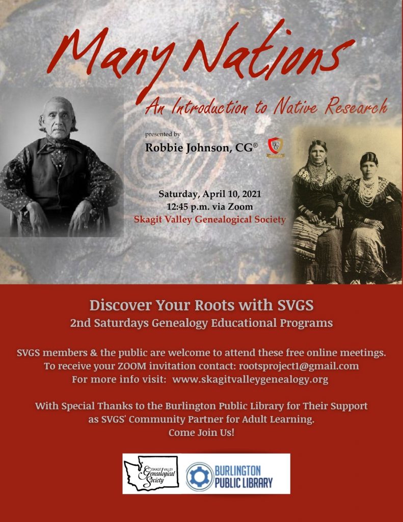Skagit Valley Genealogical Society Many Nations for April Meeting