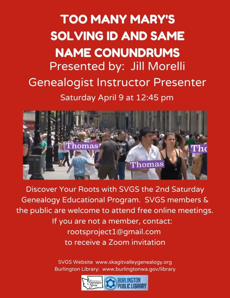 Skagit Valley Genealogical Society Too Many Mary’s
