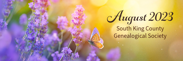 Also, the free online program “Introduction to Genealogy” hosted by King County Library System featuring Winona Laird continues each month through December. The August 16, 2023 topic is: “Vital Records, Birth, Marriage, Death and Adoption.” For details, visit https://www.skcgs.org/meetings-events/classes/kcls