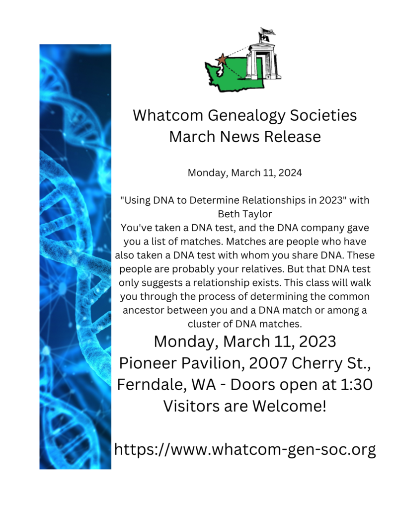 This entry was posted in Society News and tagged Whatcom Genealogical Society.