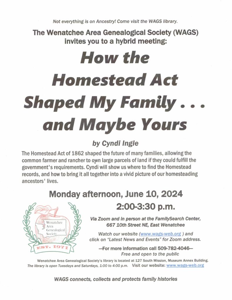 This entry was posted in Society News and tagged Wenatchee Area Genealogical Society.