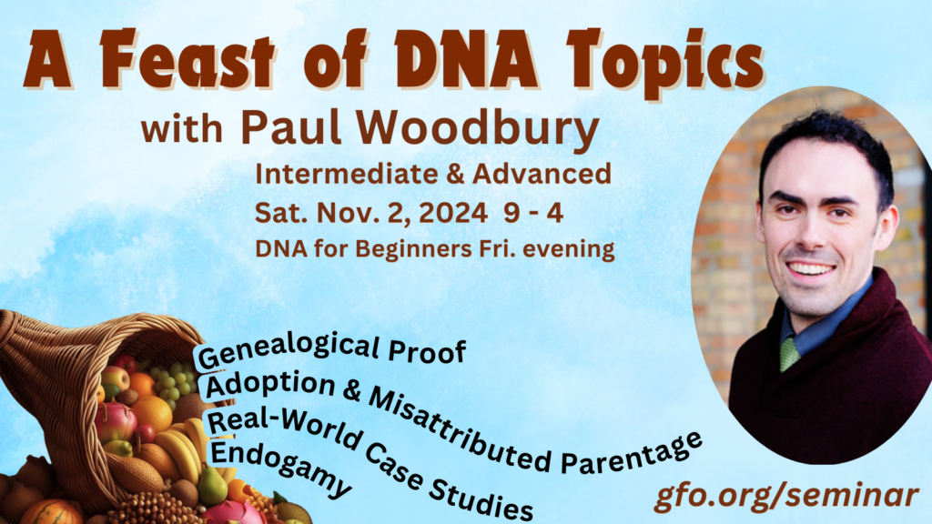 As a bonus, seminar registration includes a special session on the evening of Friday, November 1, “Intro to DNA for Beginners”, also taught by Mr. Woodbury.