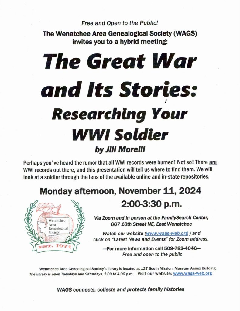 Wenatchee Area Genealogical Society The Great War Researching your WWI Soldier