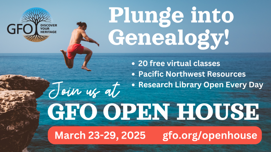 The Genealogical Forum of Oregon is pleased to host our annual Open House this month!