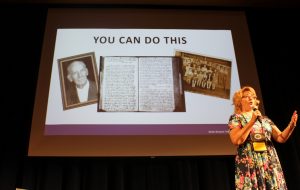 CeCe Moore, today’s keynoter, took us on quite an adventure into the world of Autosomal DNA during three plenary sessions. She packed so much information into them, she ran over her scheduled time slot. Responding to the crowd’s cheers of “Keep going!,” she graciously complied. Her personal stories and case studies were particularly interesting and heartwarming, bringing home the importance of being on the cusp of this developing science. If you haven’t purchased a ticket to Friday night’s banquet, you’re out of luck unless the Help Desk has a few from those unable to attend. CeCe will be talking about “Making History with Genetic Genealogy.” She’ll share behind-the-scenes experiences and research in her role in using DNA to solve family mysteries.