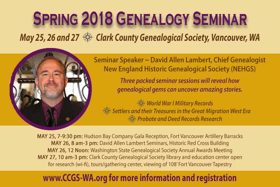 “Slow down. Mull and ponder.” That was a frequent reminder from J. Mark Lowe, the featured speaker at Tacoma-Pierce County Genealogical Society‘s Spring Seminar on April 27 and 28, 2018. Good advice to someone (like me!) who often jumps from rabbit hole to rabbit hole while researching my family history — and other activities.