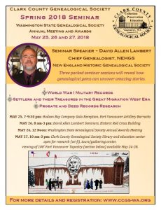 Tacoma-Pierce County Genealogical Society always hosts a first-rate seminar. Good location, good organization, very welcoming. They are so well-organized, they’ve already lined up their speaker for 2019: Michael Lacopo, DVM. Dr. Lacopo has a varied and interesting ancestry and is a self-described “all-American mutt.” Mark your calendar for April 26 – 27, 2019.