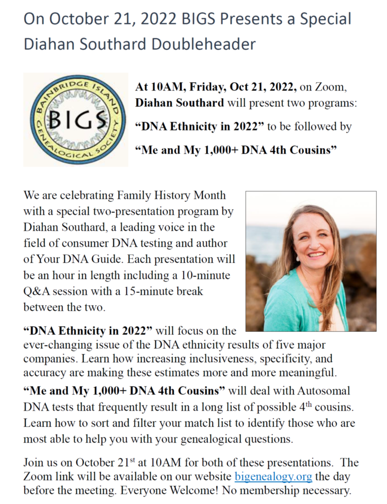 Wednesday, September 28, 2022, 10:00 am-11:30 am, Brags & Bricks Social Interest Group (Virtual), Join us for an informal social gathering. Share your recent genealogical successes and challenges, or just come to hang out with other genealogists.