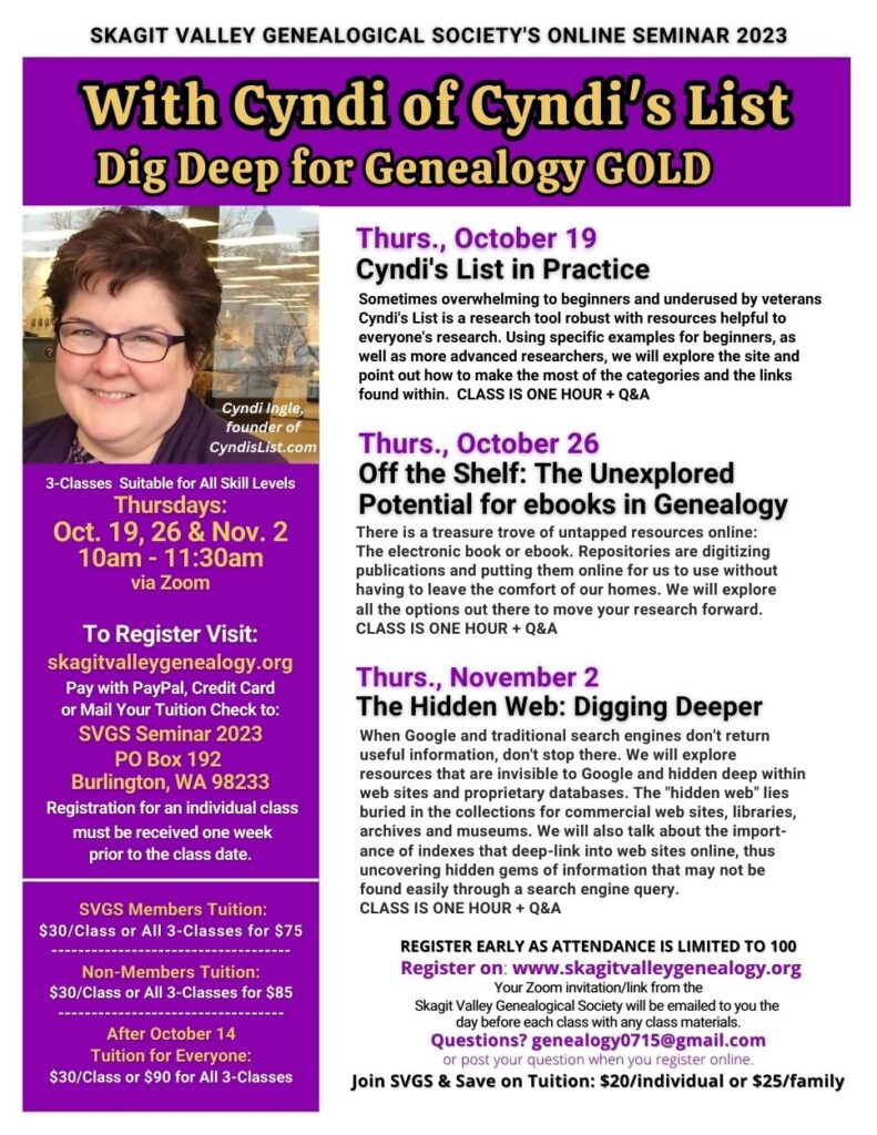 Skagit Valley Genealogical Society Online Seminar 2023