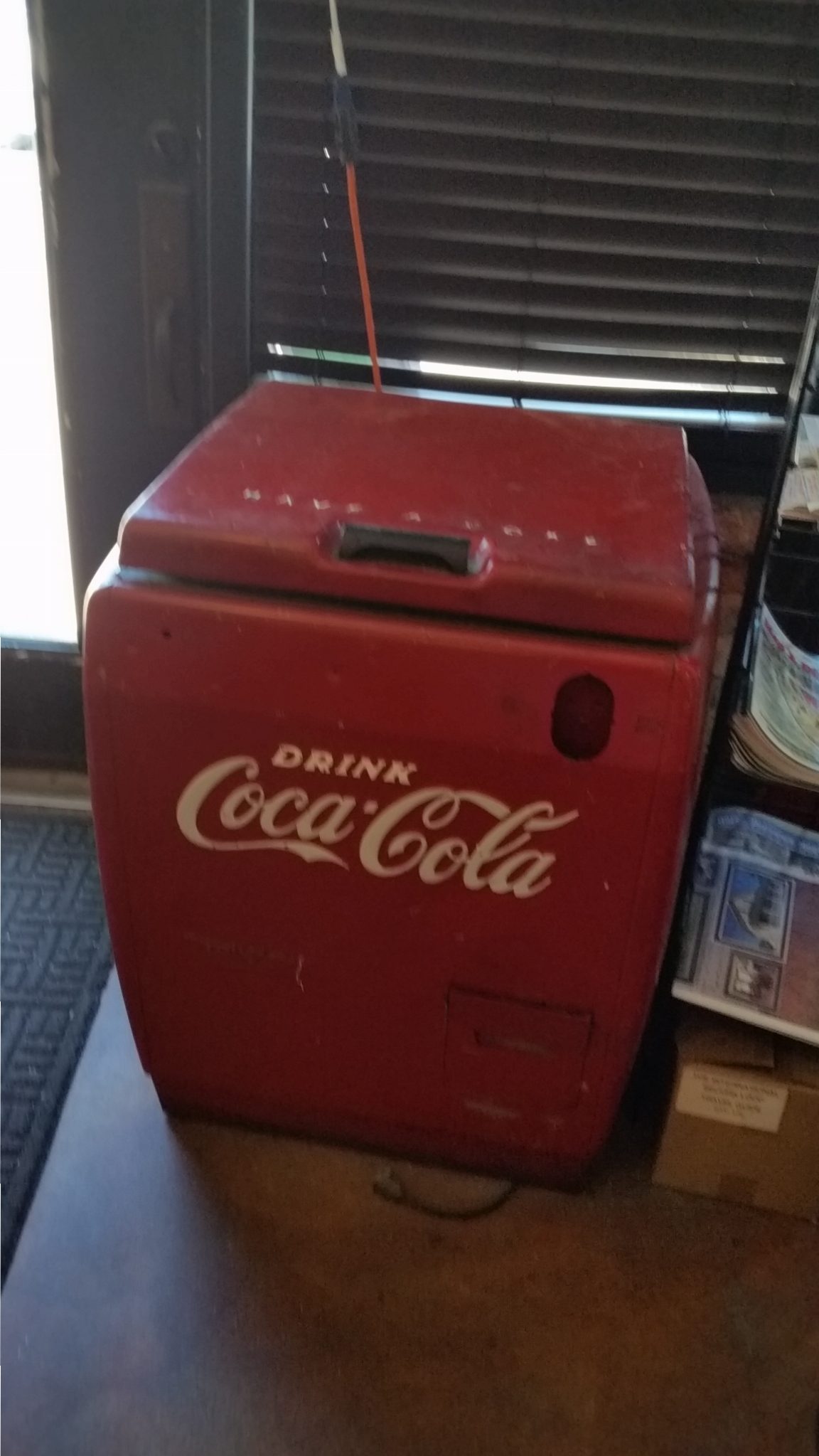 How many of us remember begging Mom for a nickel (a Buffalo head nickel likely) to buy an icy-cold glass bottle of Coca-Cola from a big red tin box like this and then snap off the cap right there on the front of the machine? If you do have a memory of this, please share it!
