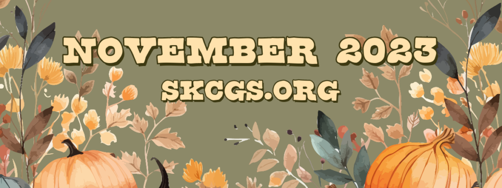 MEMBERSHIP: We welcome guests to our meetings and special interest groups, which are free. Naturally we hope that visitors will want to become members. Support like yours helps us to educate and engage with our community to foster interest in family and local history. Regarding our programs, even if and when we can meet again in person, we will continue with some virtual programs. You can find more information about membership at our website at https://www.skcgs.org/support-skcgs/membership.