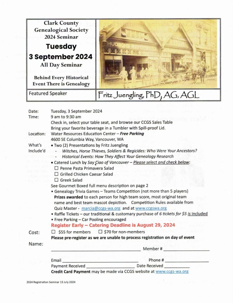 Trail Breakers Volume 50, July 2023 – June 2024 is now available to the public on the Clark County Genealogical Society (CCGS) website! Get a PDF copy here or view the issue in our library.