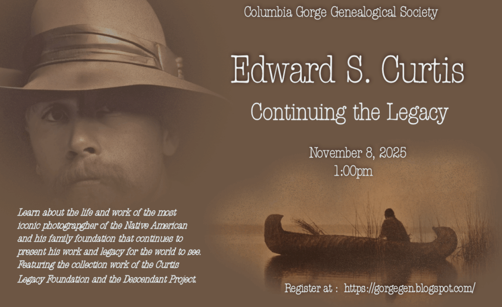 This presentation covers life stories and photos from his private studio in Seattle and the on going preservation of this renowned photographer and historian through the Curtis Legacy Foundation. The foundation is presently involved with two projects, the Unpublished Series of books which have been released for sale and the Descendants Project that is being conducted with cooperation of native tribes in the Northwest and Southwest. Program facilitator is Georga Foster.