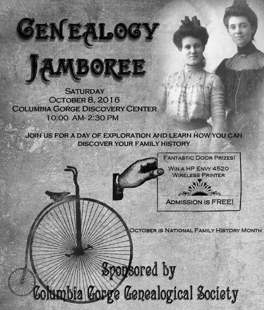 The June meeting and program for the Columbia Gorge Genealogical Society will be June 9, 2018 at the Columbia Gorge Discovery Center starting at 10:30 am.