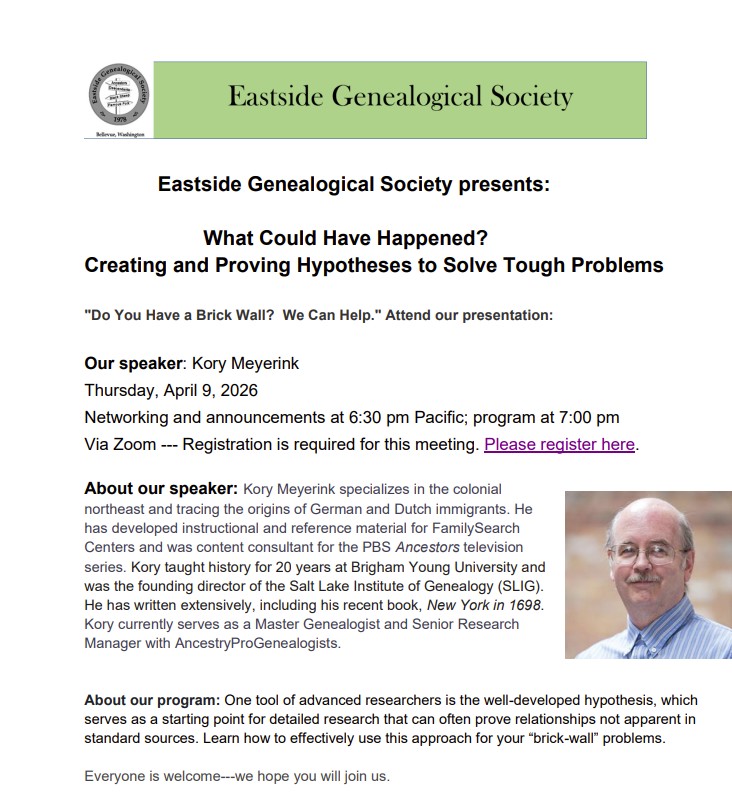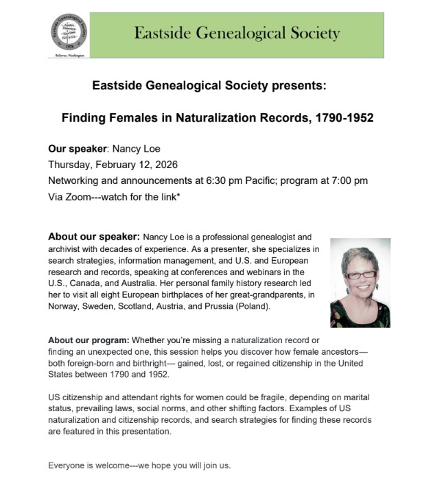 | Date: March 21, 2026 (Saturday) Time: 1:30 PM (PT)Find Your Family in U.S. Catholic Church Records Presenter: Sunny Jane Morton |